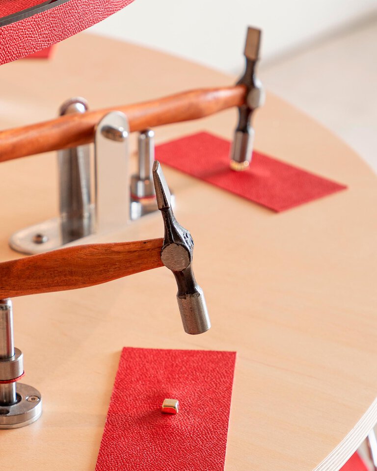Through texture, dimensionality. The Italian term Millepunte translates to "a thousand dots" in English -an accurate description of this leather's finely grained surface, but also a modest one. In fact, the unique treatment that results in these so-called "dots" makes for a leather that is not only beautiful to look at, but resilient enough for daily use. Its uneven texture takes on colour with vividness, depth and vibrancy.