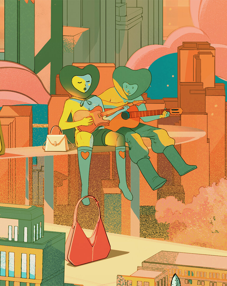 Exploring the positive tension in juxtapositions, the illustrator Shan Jiang is a serendipitous Valextra collaborator. For our Chinese Valentine’s Day chapter, the Shanghai native creative captured the essence of love within couples, emphasising the emotional connection and intimacy shared between individuals that reflected the timeless nature of Valextra.