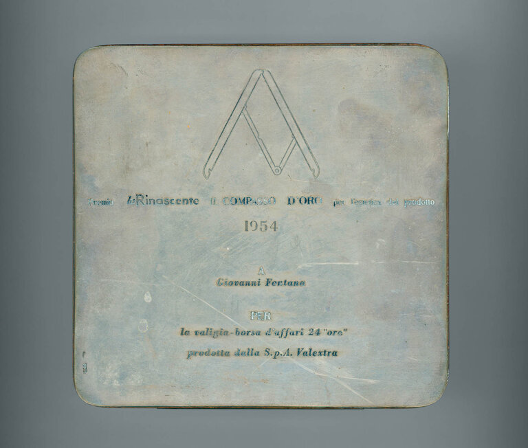 A tarnished brass award plaque from 1954, celebrating "the aesthetic of a product." But look closer at the inscription: the product in question was a "24 hour' bag that is not only about aesthetics, but about an elegant form with function at its core. The successful marriage of these two elements is not just an accolade to be treasured with pride, but an ongoing inspiration for design that continually speaks to the needs of the present.