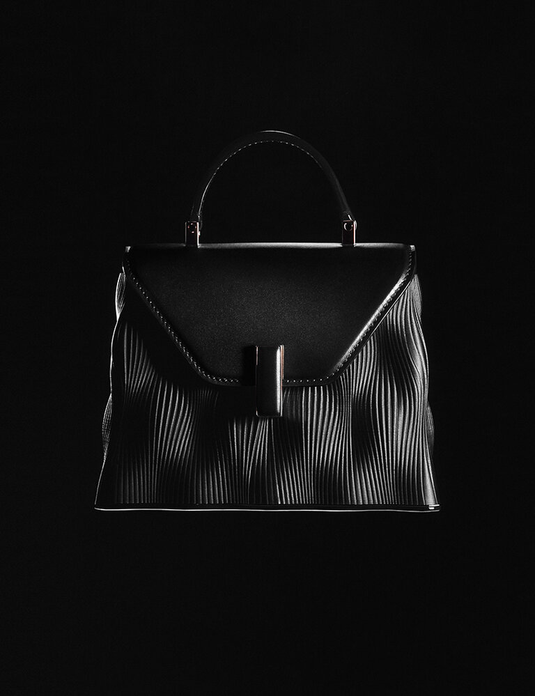 Engineered in all-black ECONYL® yarn, with sleek monochrome hardware, this high-performance luxury series is a new expression of Valextra’s dedication to elevated object design and material innovation manifesting in streamlined handbags that align with our design sensibility of ergonomic urban elegance. Alongside a multi-pocket utility Shopper and pod-shaped Bumbag (inspired by the 1968 Tric-Trac bag), a folded Backpack with a V-shaped fold is the collection’s hero piece, with its compact, design enriched with accents in our signature Millepunte leather.