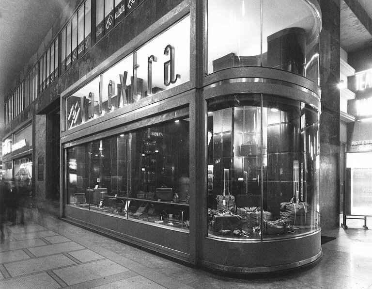 A process, captured. In a faded black and white photograph we see artisans at work in front of a curving, windowed façade. From here, a quick glimpse upwards is enough to witness the world passing by on Milan's Piazza San Babila-and find continual inspiration. This is a portrait of craft honed not just through manual skill but keen observation of human habits. A way of working grounded in everyday life.