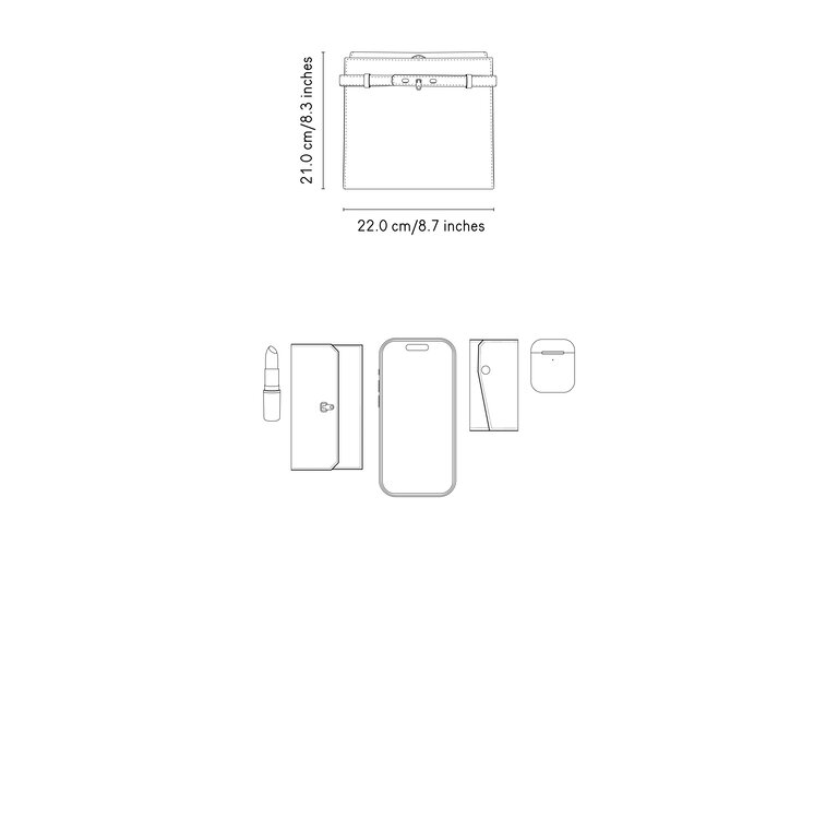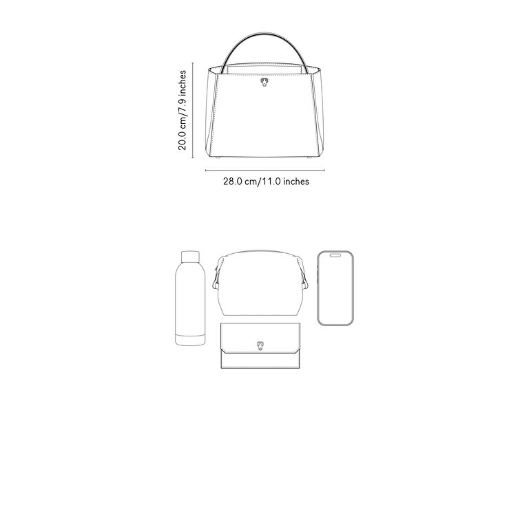 - Its top handle is complemented by an additional shoulder strap that can be discreetly connected.