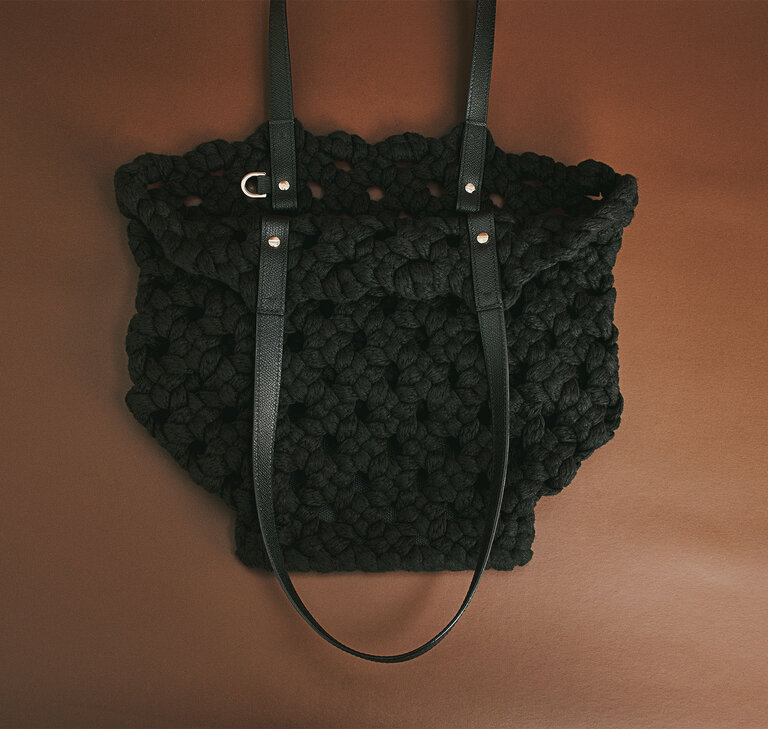 The SportamiVia spotlights the ancient art of Pizzo di Cantù through a collaboration with the design studio and textile handcrafts laboratory Un Pizzo. Founders Agnese Selva and Bettina Colombo work with the Tombolo technique popular in Cantù tradition that sees a cylindrical tool use three black threads to create a tubular-knit rope which was then applied to Valextra’s multidimensional Millepunte leather.