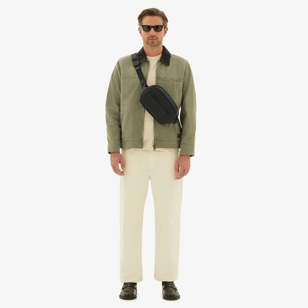 The Assoluto Bumbag sits at the intersection of Valextra’s artisanal skill and cutting-edge material innovation. Crafted from ECONYL® regenerated nylon, it is both an ode to sustainable practice, functionality, and an object of enduring admiration. Engineered to intuitively respond the requirements of an everyday compact bag, its central compartment features space for essentials while a signature V-cutout pocket and pouch pocket – both lined with our Millepunte leather – are both useful and quietly luxurious. Its adjustable jacquard strap allows it to be worn around the waist, crossbody or on the shoulder, while its two-way double zip, that is concealed beneath a water-repellent seal, is both subtle and protective. Defining our codes of discreet luxury, it is a part of the first Assoluto collection that herlads a new era of material innovation for Valextra.