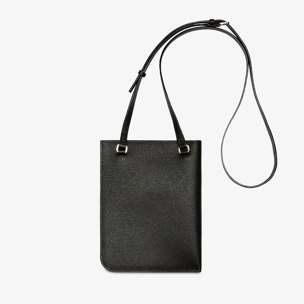 • A compact crossbody document holder crafted from our signature Millepunte calf skin in black.