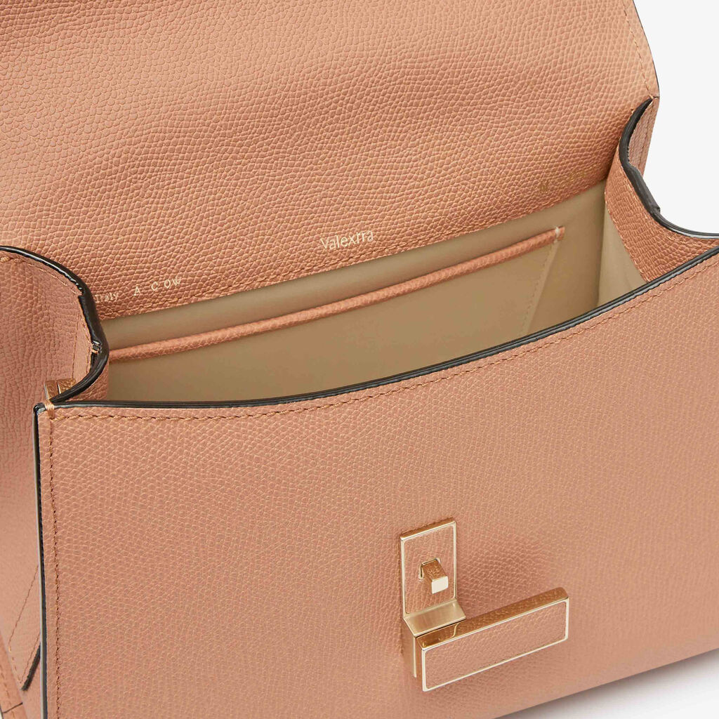 Finesse and function combine to create the ultimate Valextra icon, the Iside handbag. This mini chapter in the Iside story provides a compact alternative to our larger styles and caters for every day and evening essentials. Its leather-coated clasp and strap – which can be detached at the touch of a finger – epitomise the urban craft that Valextra handbags embody.