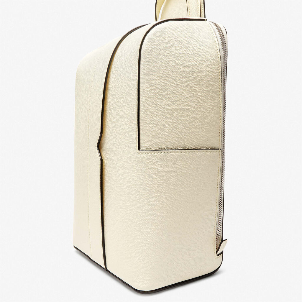 • A one-shoulder backpack crafted from our signature Millepunte calf skin in Pergamena White.