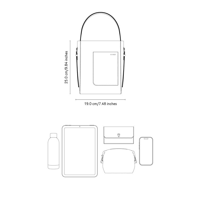 Structured, yet soft, the mini Bucket bag has special credentials. Its external pocket takes its shape from the windows of Valextra’s first Milan flagship on Via San Babila in the 1960s and speaks to our reputation for celebrating architectural form. Meanwhile, its foiled serial number is unique to the bag and the artisan who made it, a sign of our commitment to preserving hand-crafted skill. The perfect place for keeping tech and travel passes close to hand, this design detail is specific to the Bucket story and an integral chapter in our own.