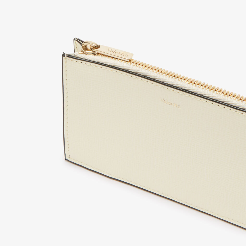 Defining contemporary elegance, our card holder complete with three slots and a central zipped compartment for coins is an ode to the joy of everyday objects. Finished with our black lacquered Costa edging and gold hardware, it is distinctively Valextra.