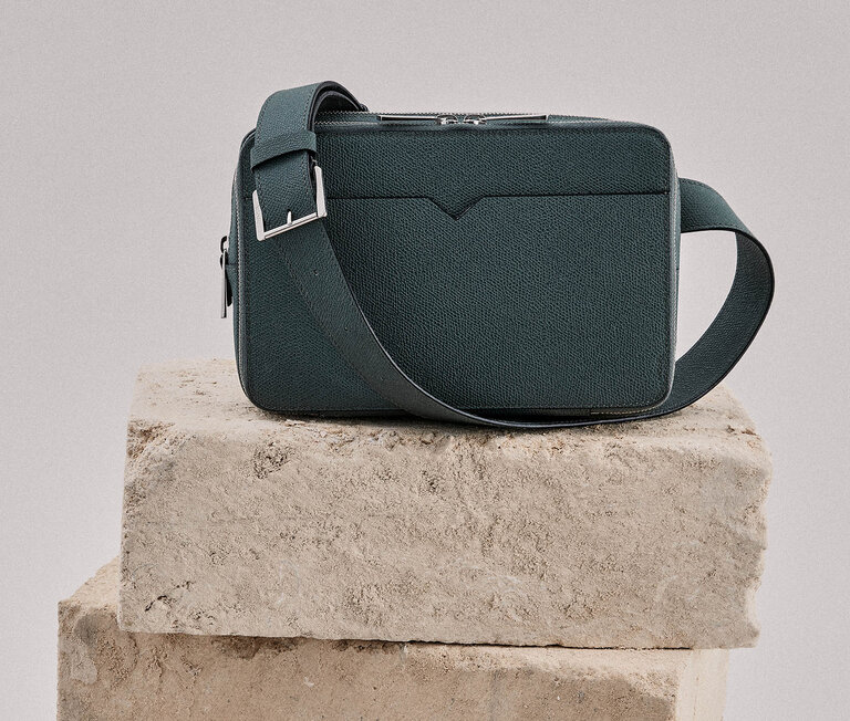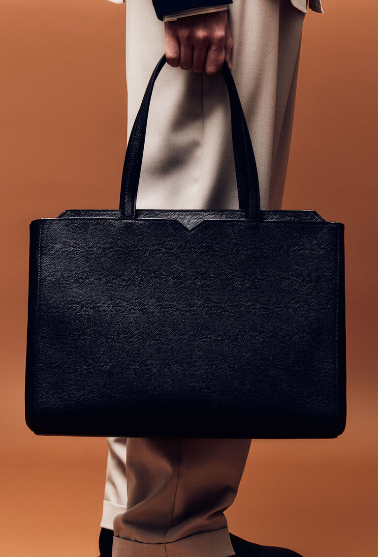 To some, the V-cut on the external pocket of this bag, might simply appear as an abstract spike of energy, or a thrumming soundwave. But for those who know, it's a subtle identifier. Sharp-eyed types will notice it not just on the outside of select bags, as pictured here, but as an ergonomic embellishment on the interior pockets of a range of items. It's a dynamic detail, but never louder than a whisper -and that's entirely the point.