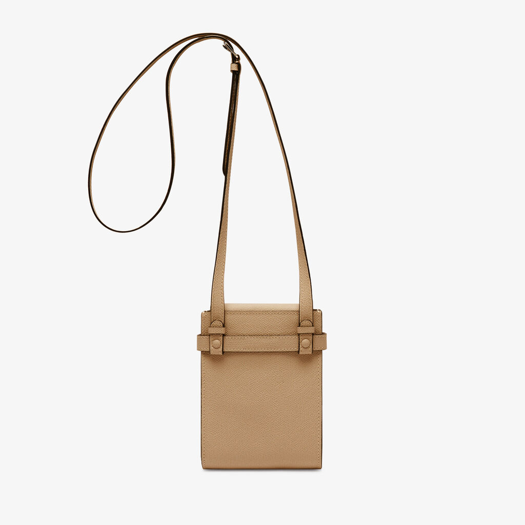 • Una borsa a tracolla essenziale, realizzata nella nostra pelle di vitello Millepunte.