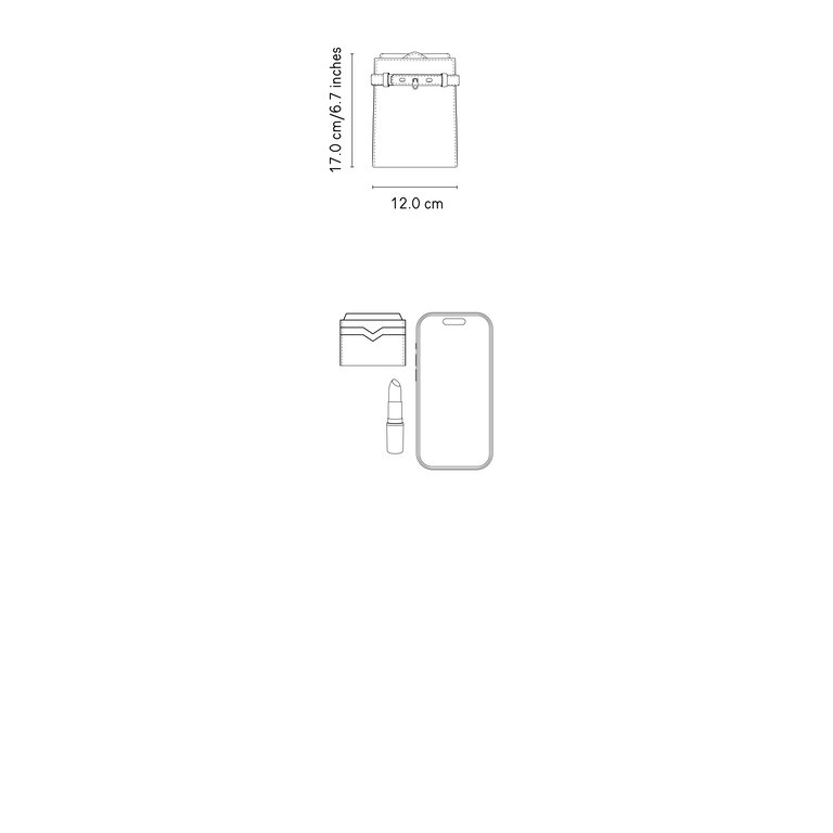 - Il pignone frontale tiene chiuso il laccetto, mentre la borsa è chiusa tramite una patella con bottone calamitato.