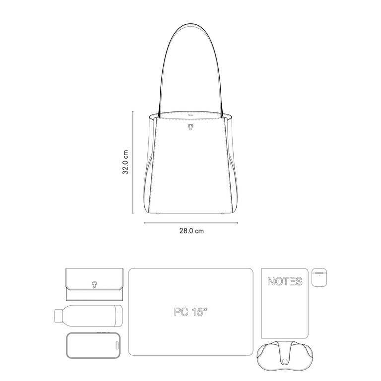 - Il manico superiore curvo e la tracolla rimovibile con un gesto suggeriscono usi diversi.