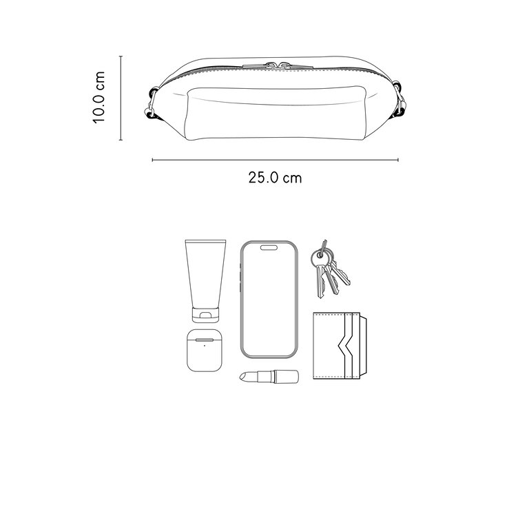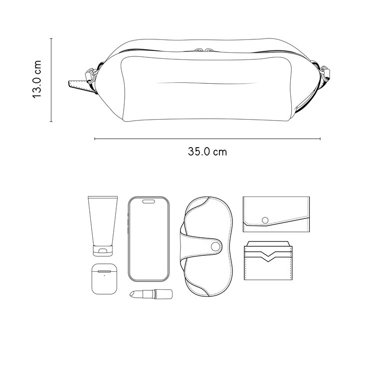 - La sua tracolla è regolabile e lunga 83-92 cm. Non è rimovibile.