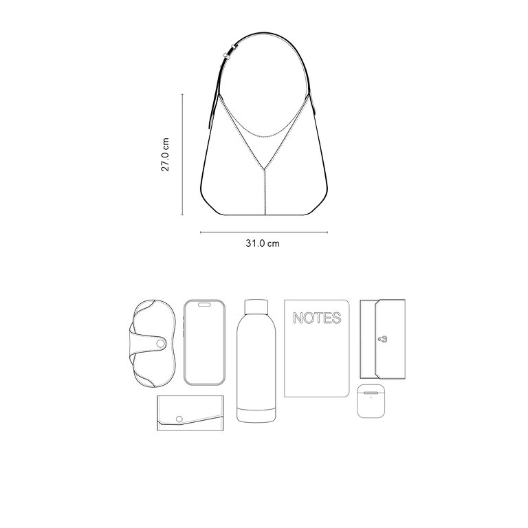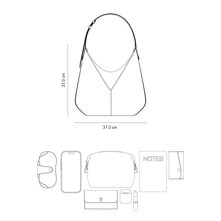 La borsa Hobo ViVi emana l'essenza dell’eleganza progettata. In pelle Millepunte Soft, le sue forme morbide e delineate dai bordi Costa laccati in nero uniscono tutti i codici di firma Valextra, come gli angoli stondati e la costruzione a V. All'interno, è rivestita in soffice pelle scamosciata. I codici Valextra sono silenziose aggiunte di prestigio, come il ferma tracolla in metallo dorato, con inserto in pelle, per regolarne la lunghezza quando la si indossa. Armoniosa e capiente, questa borsa accompagna chi la indossa, con distinzione.